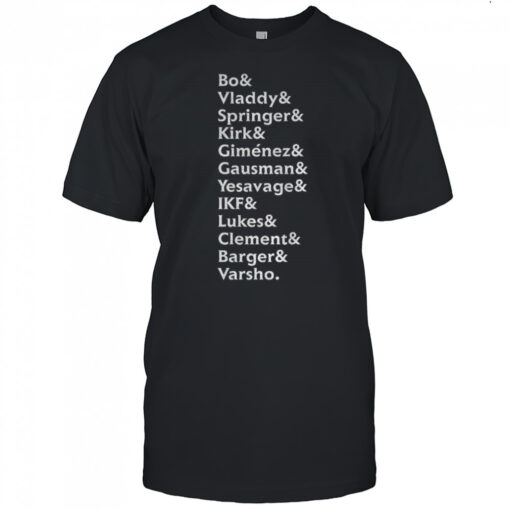 Bo Vladdy Springer Kirk Giménez Gausman Yesavage IKF Lukes Clement Toronto Blue Jays MLB Baseball shirt, hoodie, sweater, longsleeve and ladies t-shirt