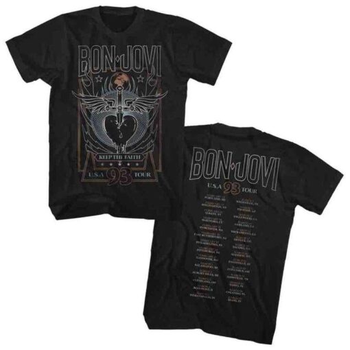Immerse yourself in the legacy of Bon Jovi with the Bon Jovi 93 Tour T Shirt, a must-have for anyone who craves the thrill of reliving the golden era of rock music. This shirt is more than just a piece of fabric; it’s a time machine that transports you back to a time when guitars roared, drums thundered, and voices echoed in unison. Feel the passion of the music pulsating through your veins as you don this vintage-inspired tee, a symbol of your undying love for timeless melodies and unforgettable performances. Don’t miss your chance to own a piece of rock history – grab your Bon Jovi 93 Tour T Shirt today and let the music play on!