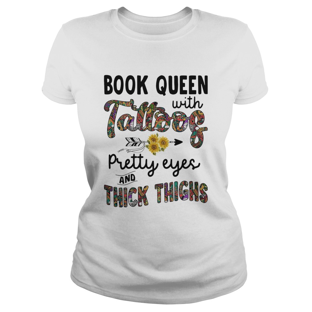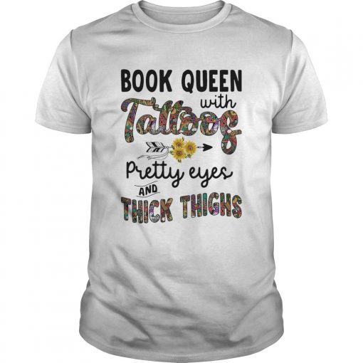 Book queen with tattoos pretty eyes and thick thighs sunflowers shirt, hoodie, sweater, longsleeve and ladies t-shirt