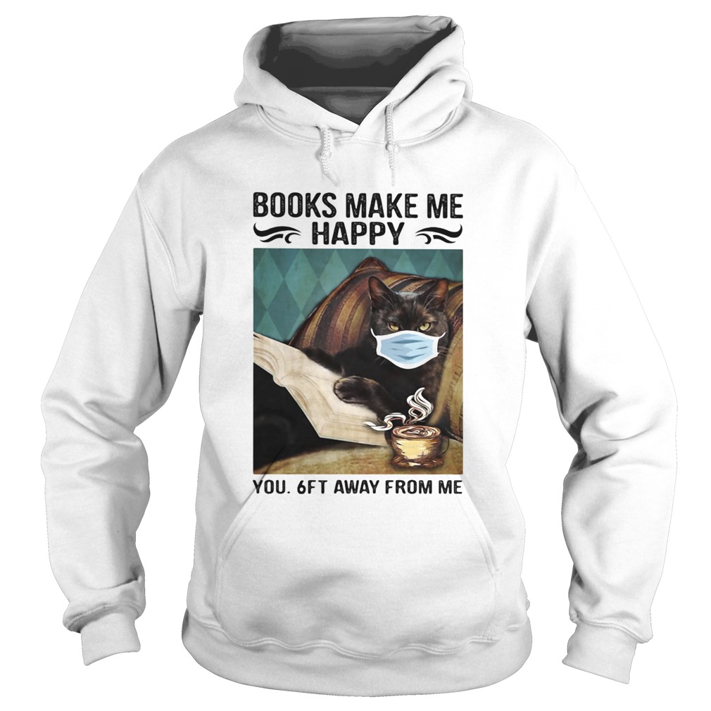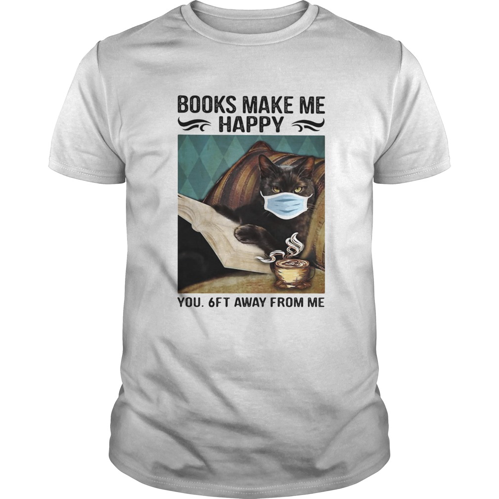 Books make me happy you 6ft away from me Black cat face mask shirt, hoodie, sweater, longsleeve and ladies t-shirt