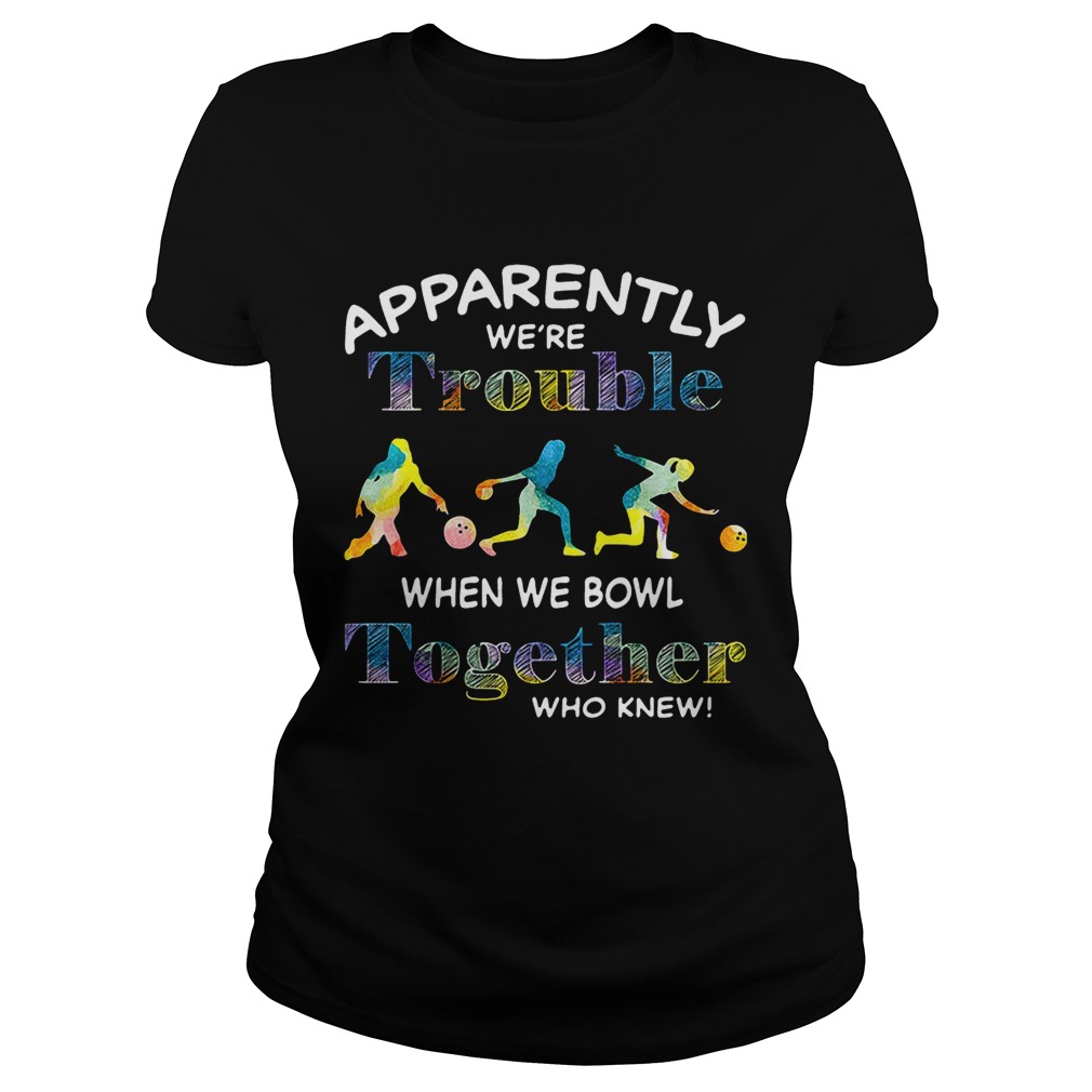 Bowling apparently we’re trouble when we bowl together who knew shirt, hoodie, sweater and V-neck t-shirt