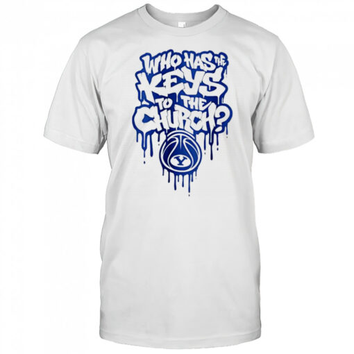 Brigham Young University BYU who has the keys to the church shirt, hoodie, sweater, longsleeve and ladies t-shirt