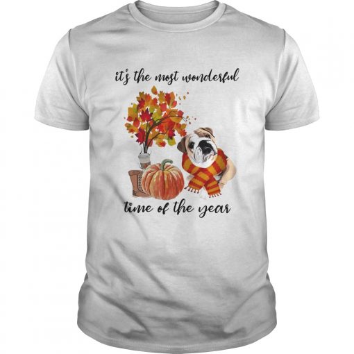 Bulldog Its The Most Wonderful Time Of The Year Fall Autumn Maple Leaf Shirt, hoodie, sweater, longsleeve and ladies t-shirt