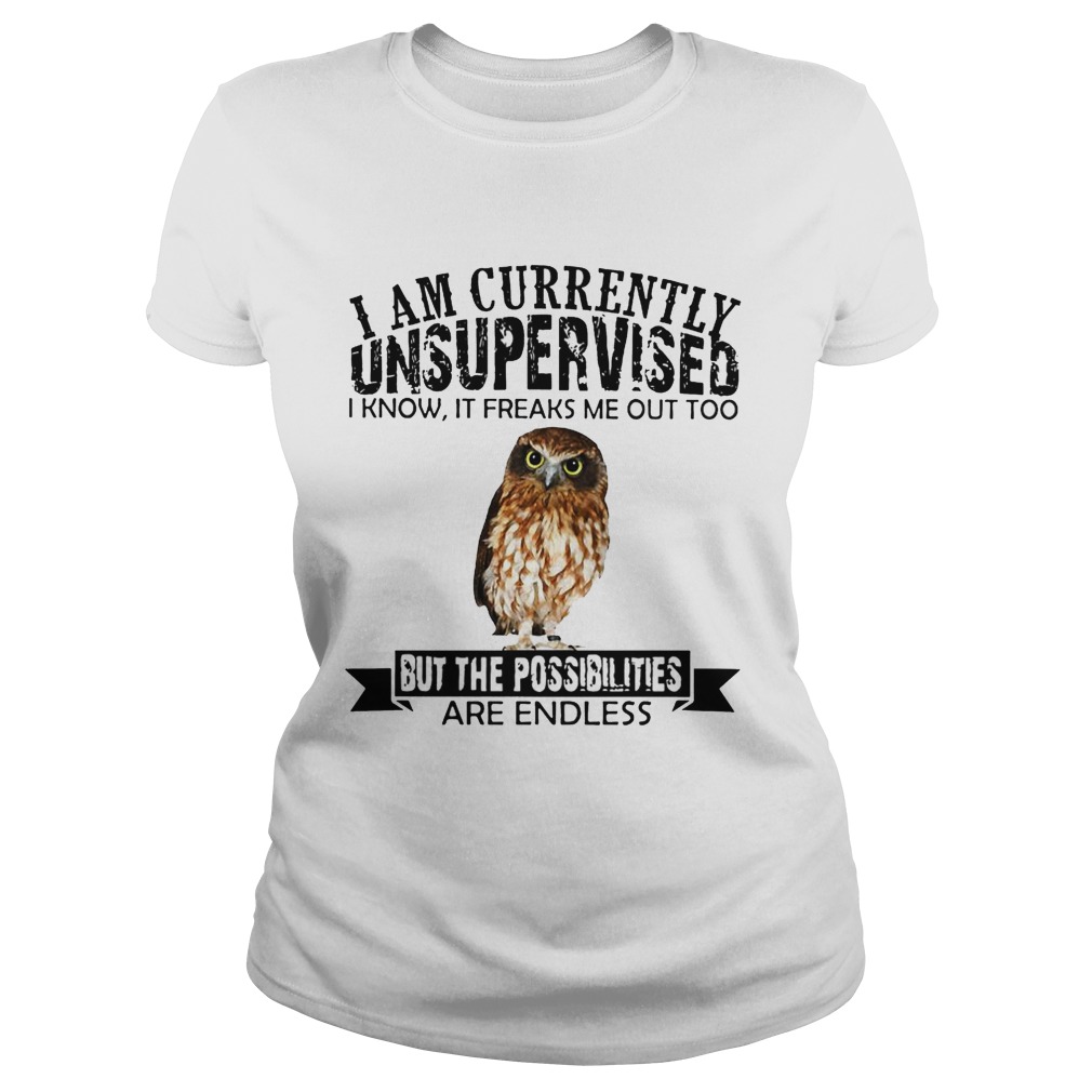 Burrowing Owl I am currently Unsupervised I know it freaks me out too but the possibilities are endless long sleeve and ladies shirt