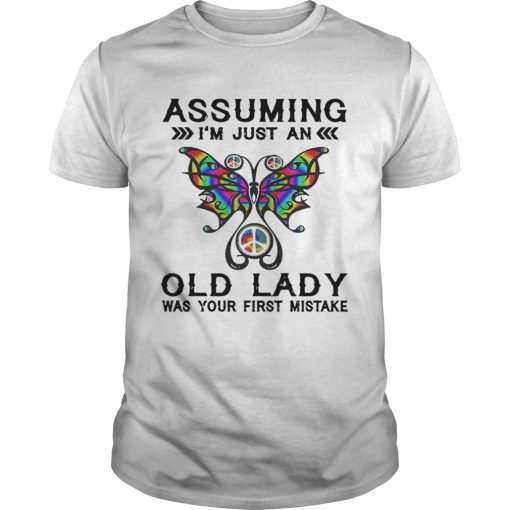 Butterfly assuming Im just an old lady was your first mistake shirt, hoodie, sweater, longsleeve and ladies t-shirt