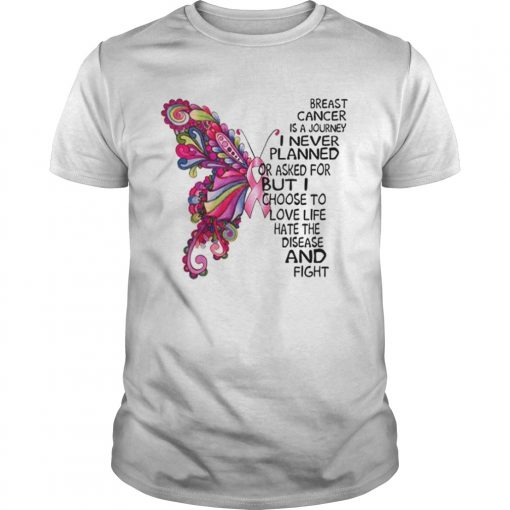 Butterfly Breast Cancer is a journey i never planned or asked shirt, hoodie, sweater, longsleeve and ladies t-shirt