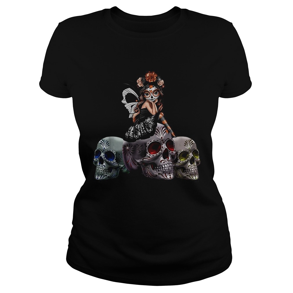 Butterfly Sit On Three Skull Spirit Of The Dearly Loved Figurine shirt, hoodie, sweater, longsleeve and ladies t-shirt