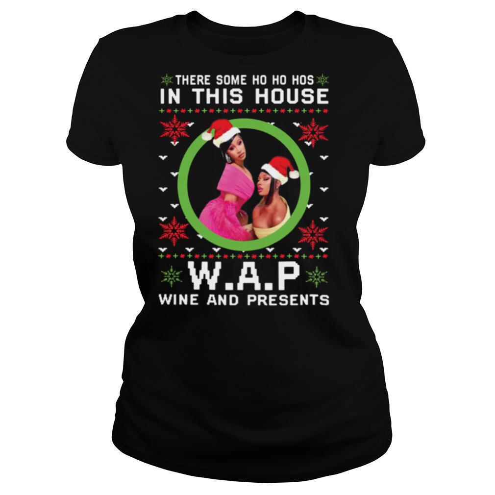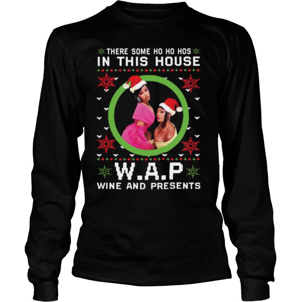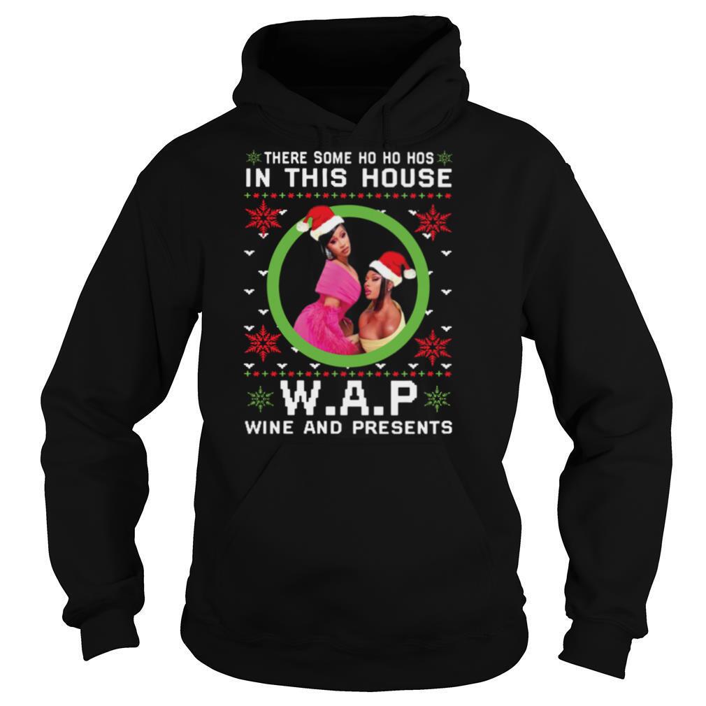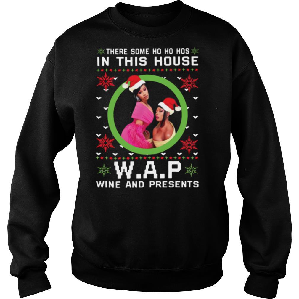 Cardi B There Some Ho Ho Hos In This House Wap Wine And Presents Christmas shirt, hoodie, sweater, longsleeve and ladies t-shirt