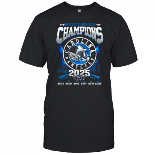Carolina Panthers NFC South Division Champions 2025 logo helmet skyline shirt, hoodie, sweater, longsleeve and ladies t-shirt
