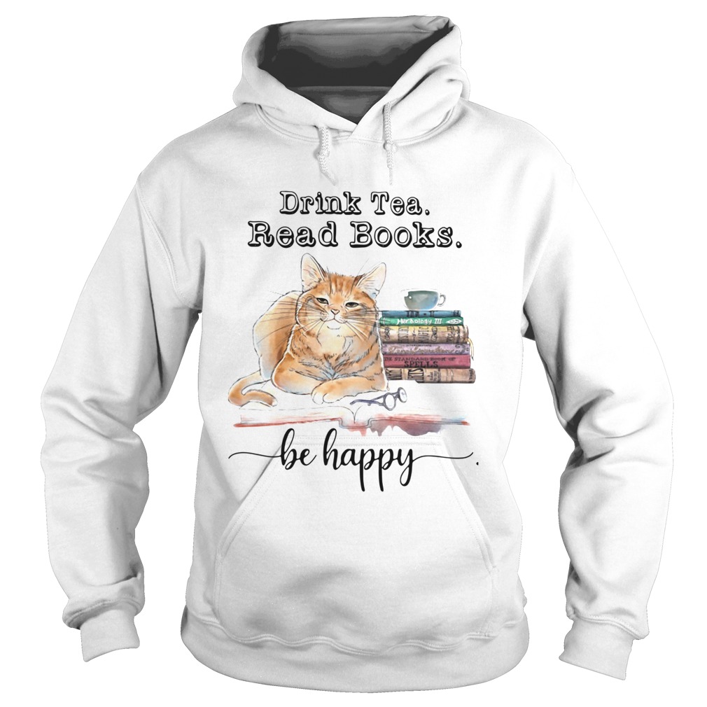 Cat Drink Tea Read Books Be Happy shirt, hoodie, sweater, longsleeve and ladies t-shirt