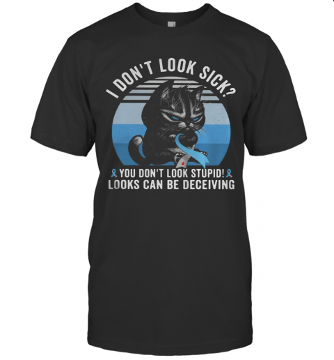 Cat I Don’T Look Sick You Don’T Look Stupid Looks Can Be Deceiving Cancer Awareness Vintage Retro T-Shirt, hoodie, sweater, longsleeve and ladies t-shirt