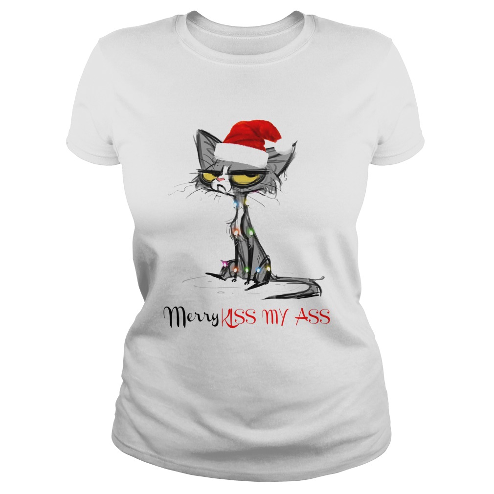 Cat Merry Kissmyass Christmas shirt, hoodie, sweater, longsleeve and ladies t-shirt