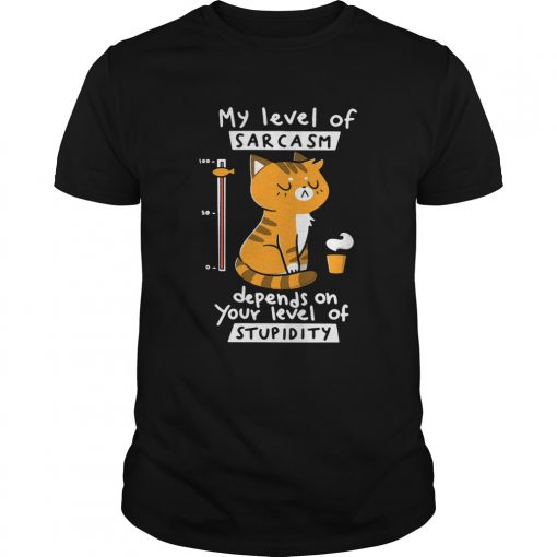 Cat My Level Of Sarcasm Depends On Your Level Of Stupidity Shirt, hoodie, sweater, longsleeve and ladies t-shirt
