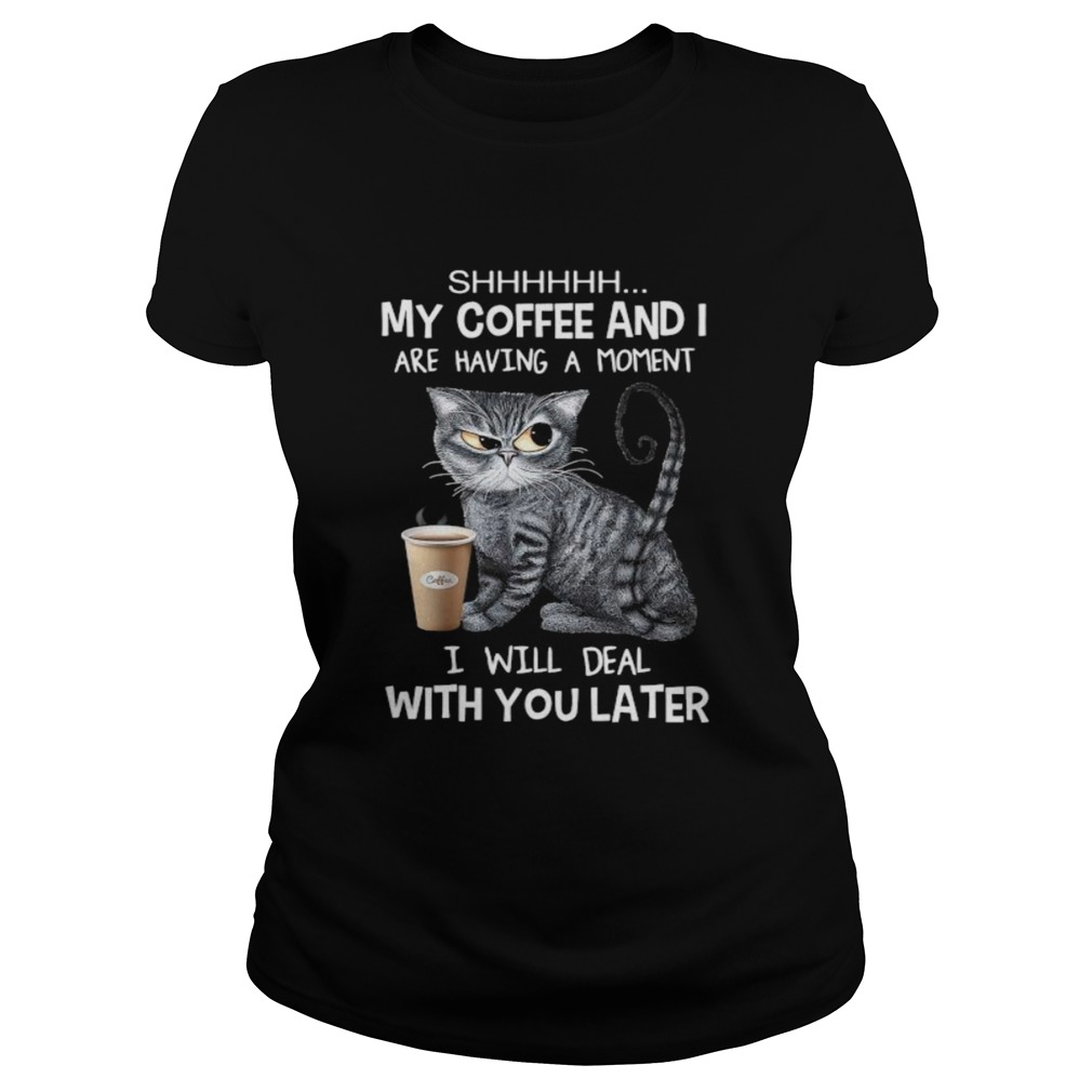 Cat shhh my coffee and i are having a moment i will deal with you later shirt, hoodie, sweater, longsleeve and ladies t-shirt