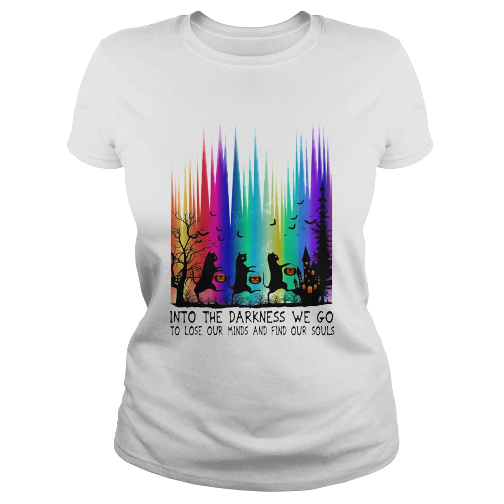 Cats into the darkness we go to lose our minds and find our souls shirt, hoodie, sweater, longsleeve and ladies t-shirt