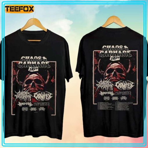 As you run your fingers over the fabric, you’ll feel the quality that sets this Cattle Decapitation and Carnifex Tour 2024 Unisex T-Shirt apart. Crafted from premium materials, this tee offers a comfortable fit that hugs your frame just right. Whether you’re heading to a concert, hanging out with friends, or simply want to showcase your affinity for extreme metal, this shirt is a versatile piece that effortlessly merges style with passion. The design’s boldness mirrors the thunderous beats and screaming vocals that define Cattle Decapitation and Carnifex, making it a must-have for any metal enthusiast looking to make a bold statement.