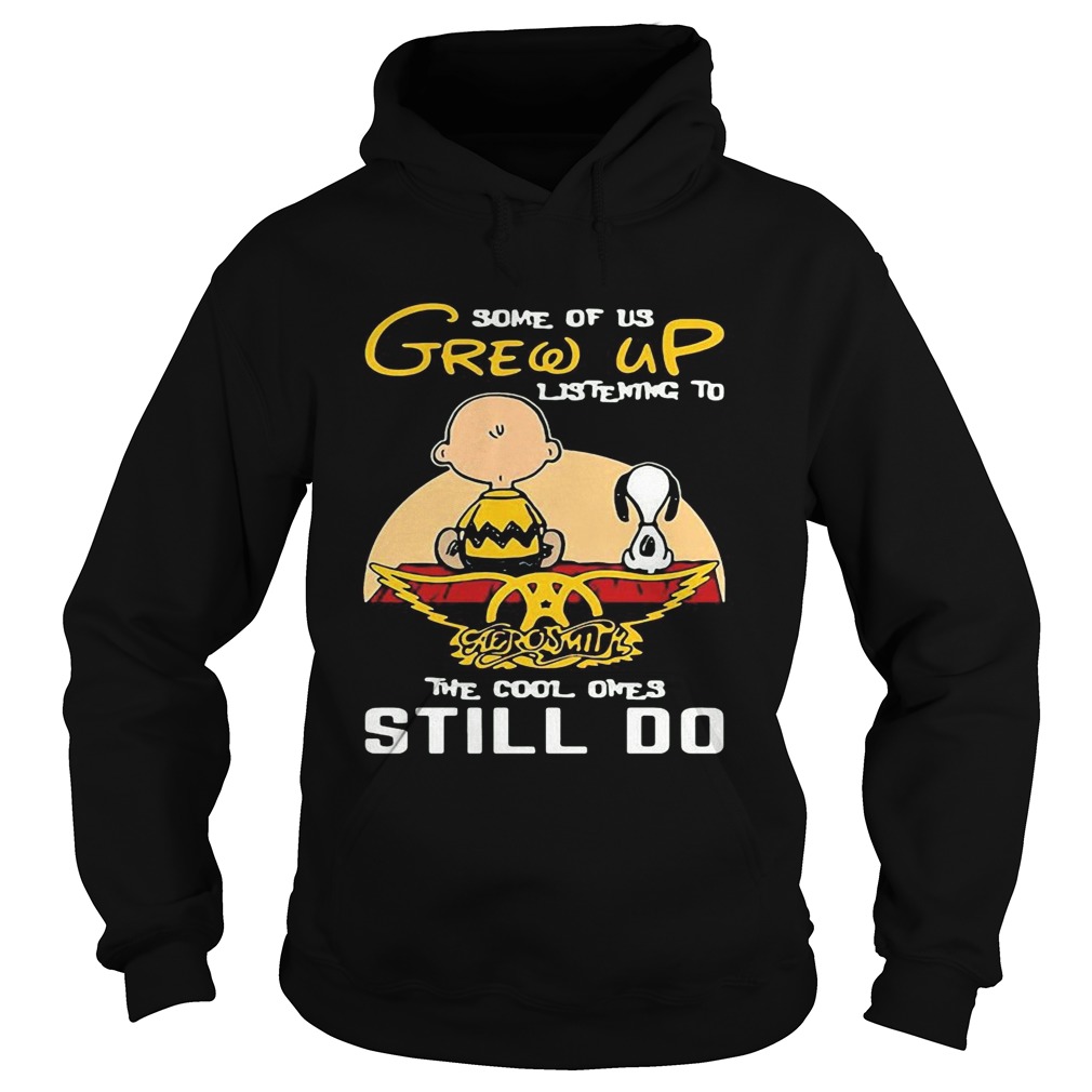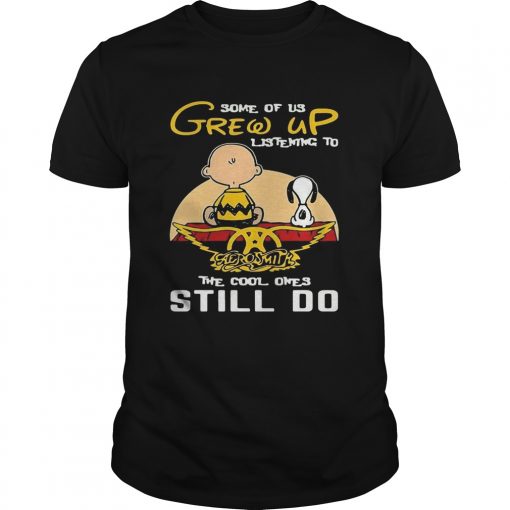 Charlie brown and snoopy some of us grew up listening to aerosmith the cool ones still do shirt, hoodie, sweater, longsleeve and ladies t-shirt