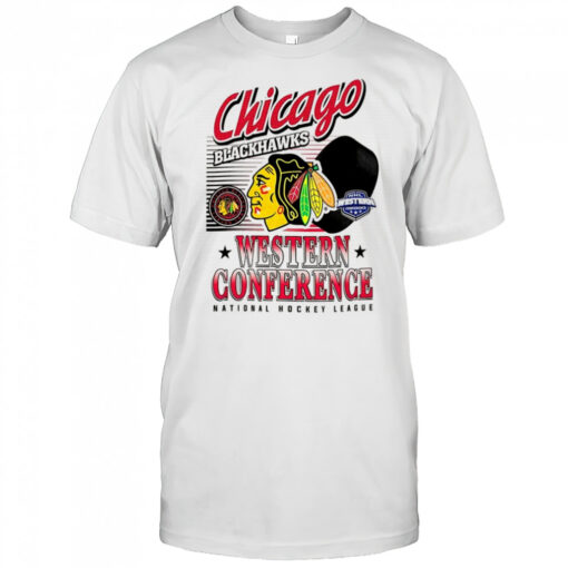 Elevate your fan gear collection with the Chicago Blackhawks NHL Western Conference logo and ball shirt today and show your allegiance to the Blackhawks in style. Whether you’re cheering from the stands or watching from home, this shirt is sure to make a statement. Donning this shirt isn’t just about fashion; it’s about embodying the team’s resilience, passion, and winning spirit. Stand out from the crowd and let your Blackhawks pride shine through with every wear. Don’t miss your chance to own a piece of NHL history – grab your Chicago Blackhawks shirt now and join the legion of dedicated fans cheering for the iconic team.