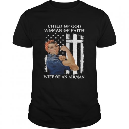 CHILD OF GOD WOMAN OF FAITH WIFE OF AN AIRMAN STRONG WOMAN FLAG shirt, hoodie, sweater, longsleeve and ladies t-shirt