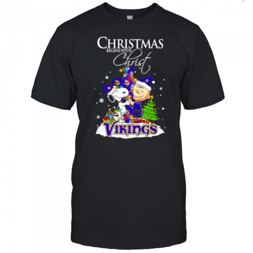 Christmas begins with Christ Minnesota Vikings x Snoopy and Charlie Brown shirt, hoodie, sweater, longsleeve and ladies t-shirt