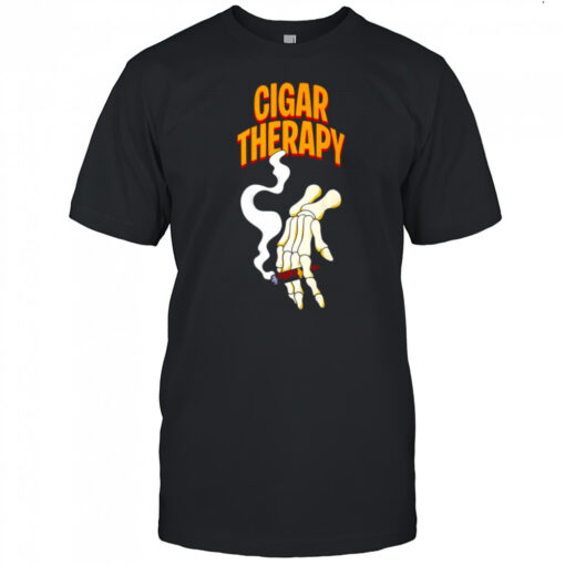 Cigar Therapy skeleton hand holding a cigar shirt, hoodie, sweater, longsleeve and ladies t-shirt