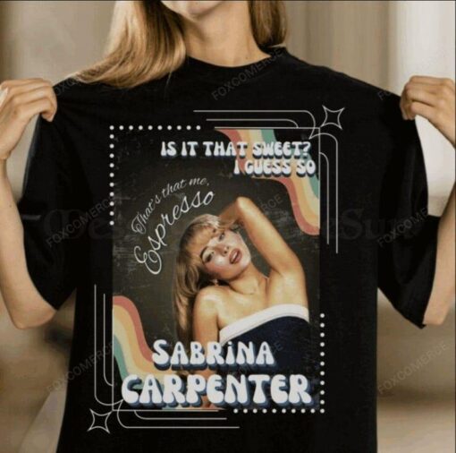 If you’re a fashion enthusiast looking to add a touch of vibrancy to your wardrobe, the Colorful Sabrina Carpenter Espresso Pop T-Shirt is the perfect choice for you. Designed in collaboration with the talented artist Sabrina Carpenter, this t-shirt embodies a unique blend of style and creativity. The colorful pop art design brings a burst of energy to your outfit, making it an ideal statement piece for various occasions. Whether you’re heading out for a casual day with friends or attending a music festival, this t-shirt is sure to turn heads and spark conversations.