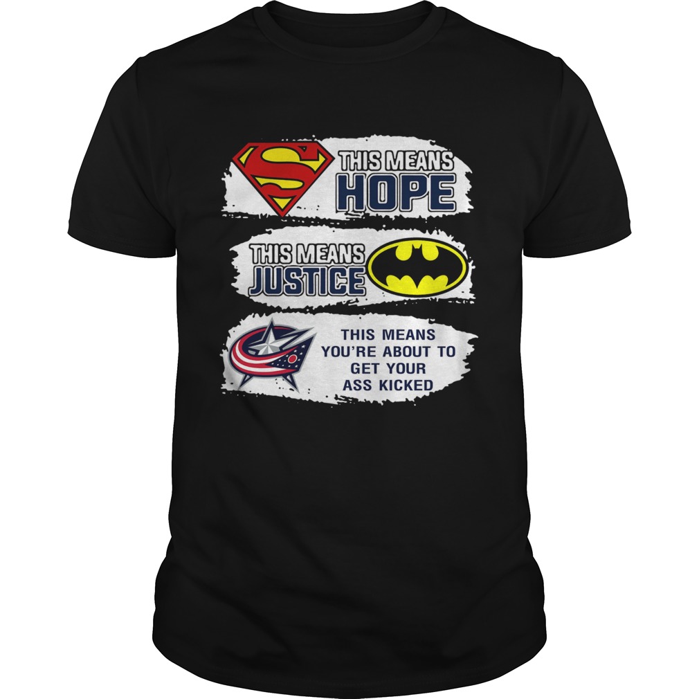 Columbus Blue Jackets Superman Means Hope Batman Your Ass Kicked shirt, hoodie, sweater, longsleeve and ladies t-shirt