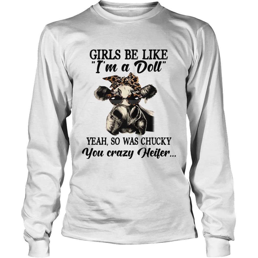 Cow girls be like Im a doll yeah so was chucky you crazy heifer shirt, hoodie, sweater, longsleeve and ladies t-shirt