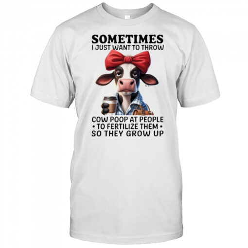 Cow holding coffee sometimes I just want to throw cow poop at people to fertilize them shirt, hoodie, sweater, longsleeve and ladies t-shirt