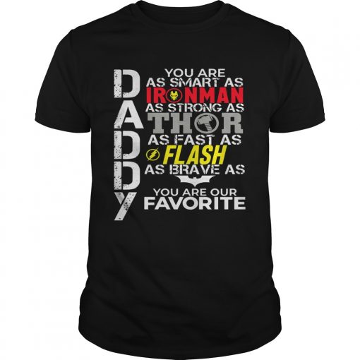 Daddy You Are As Smart As Ironman As Strong As Thor As Fast As Flash As Brave As Batman You Are Our, hoodie, sweater, longsleeve and ladies t-shirt