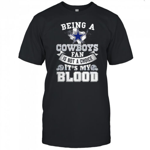 Dallas Cowboy football being a Cowboys fan is not a choice it’s my blood Star logo shirt, hoodie, sweater, longsleeve and ladies t-shirt