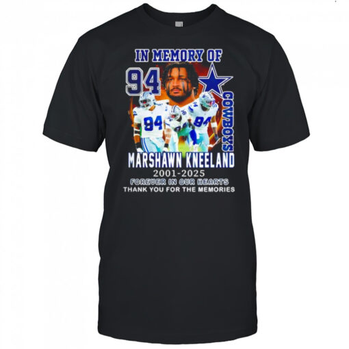 Celebrate the enduring legacy of Marshawn Kneeland by wearing the Dallas Cowboys In Memory Of Marshawn Kneeland Memories 2025 shirt proudly. Embrace the sense of unity and pride that comes with honoring a revered figure in the Dallas Cowboys history. Whether you’re attending a game or simply showing your support around town, this shirt is a poignant symbol of remembrance and admiration. Don’t miss the chance to be a part of this meaningful tribute. Join us in commemorating Marshawn Kneeland’s impact on the Dallas Cowboys family. Get your shirt today and wear it as a symbol of respect and eternal gratitude.