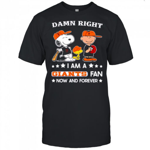 Damn Right I Am A Giants Fan Now and Forever Snoopy and Charlie Brown shirt, hoodie, sweater, longsleeve and ladies t-shirt