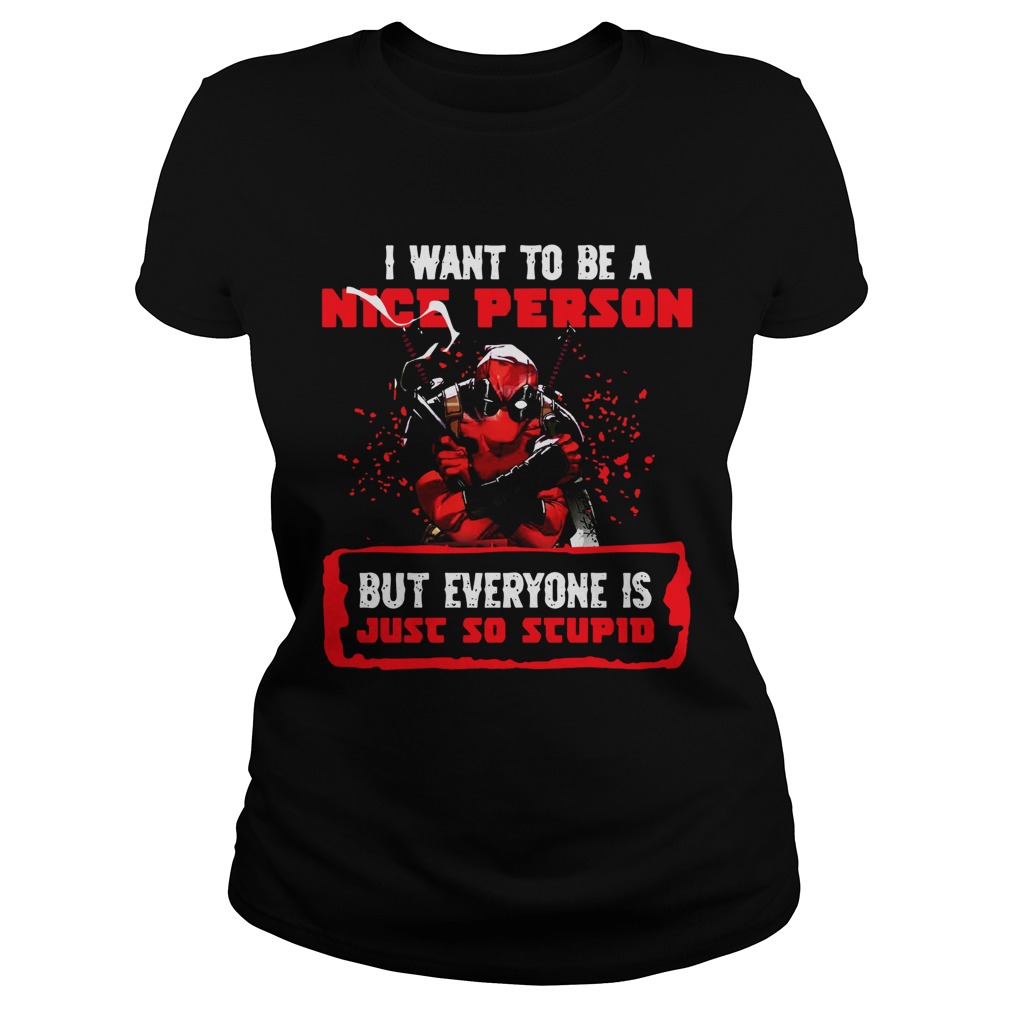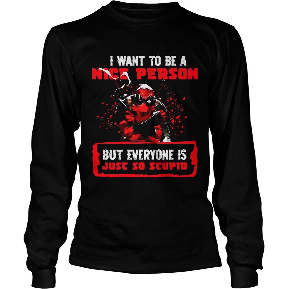Deadpool I want to be a nice person but everyone is just so stupid shirt, hoodie, sweater, longsleeve and ladies t-shirt