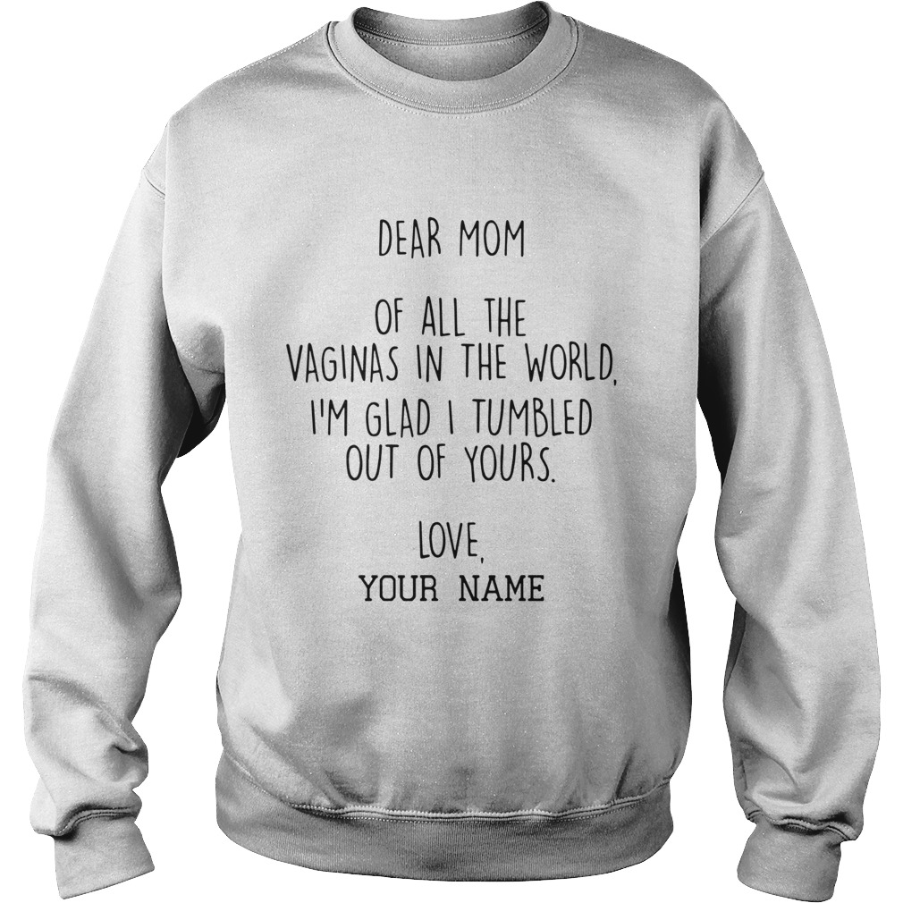 Dear Mom Of All The Vaginas In The World Im Glad I Tumbled Out Of Yours shirt, hoodie, sweater, longsleeve and ladies t-shirt