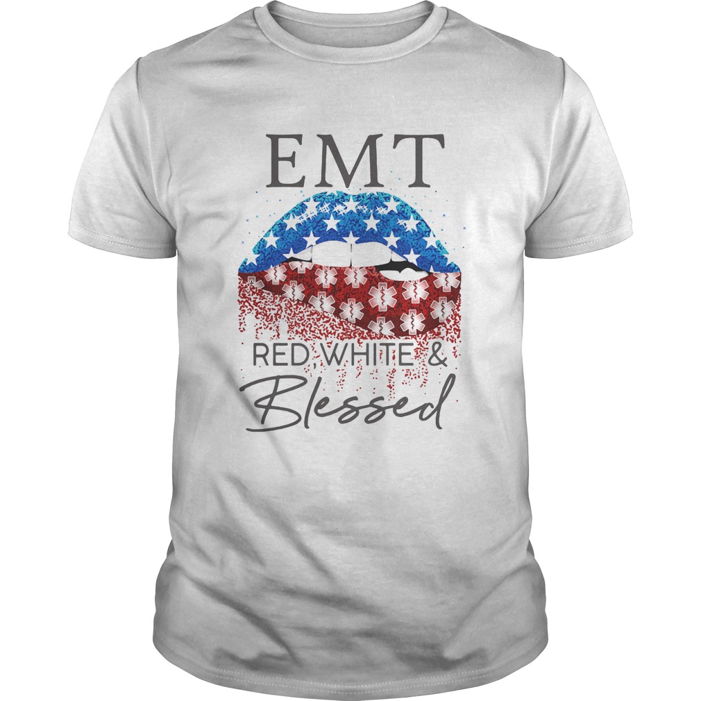 Diamond Lips EMt red white and blessed shirt, hoodie, sweater, longsleeve and ladies t-shirt