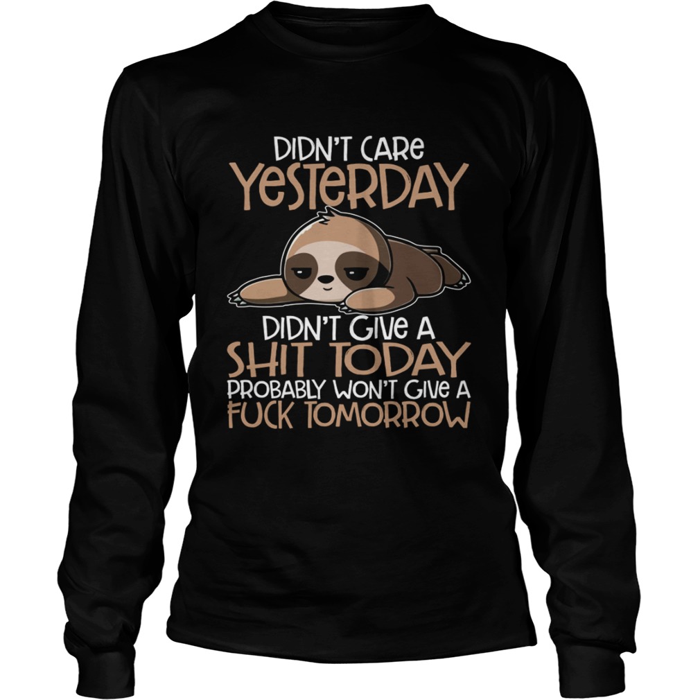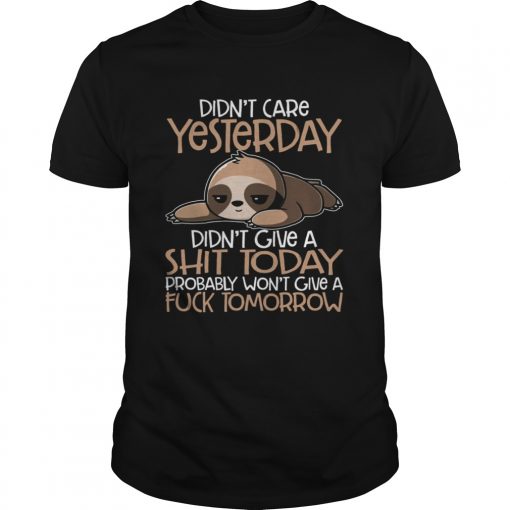 Didnt Care Yesterday Didnt Give A Shit Today Funny Sloth Shirt, hoodie, sweater, longsleeve and ladies t-shirt