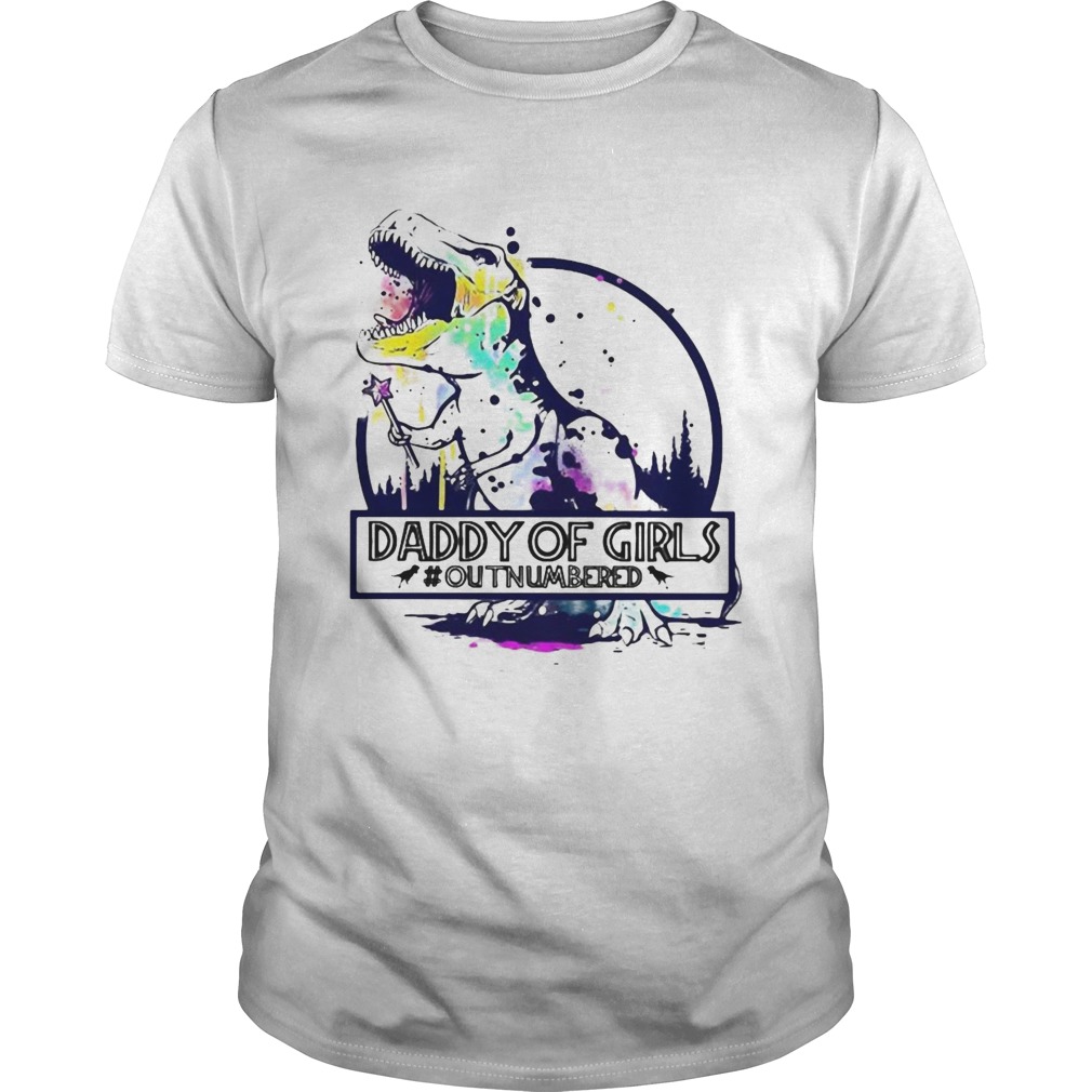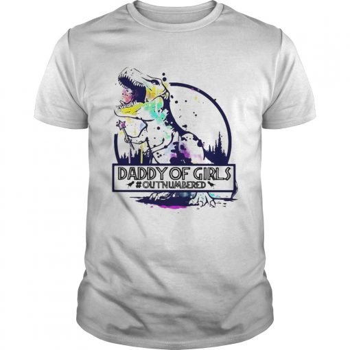 If you bleach out the Dinosaur T Rex Daddy Of Girls outnumbered shirt . black of a t-shirt this becomes much more vibrant and it pops easier. It is also much softer. This happens because bleaching it out as opposed to putting a thick cover of ink over it. Instead of normal ink, discharge inks are used. This removes the shirt`s dye. It is related to bleaching in design, except it doesn`t damage the fibers. It will change the color to be whatever color you choose to.Keep in mind that the way those t-shirts react to the process of discharge printing can be different. Most printers have preferred textures and even preferred colors to work on when using this particular method.