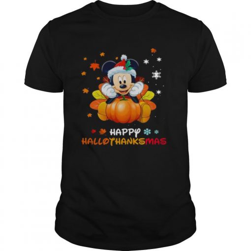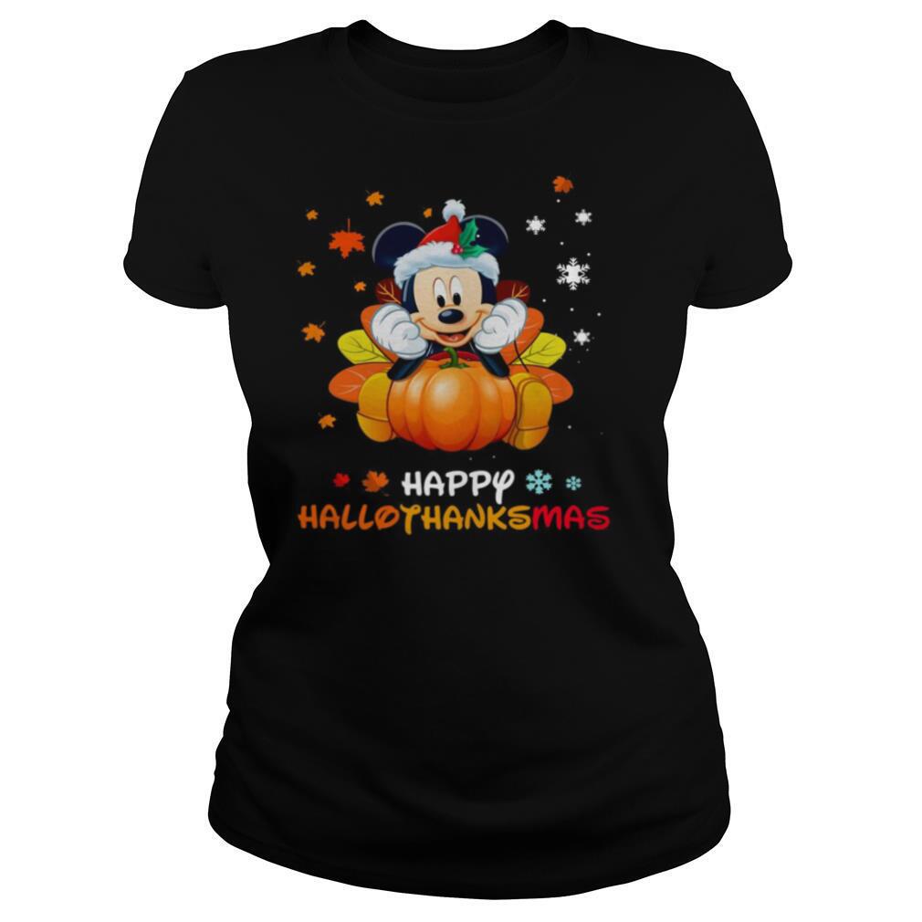 Disney Mickey Pumpkin Halloween And Merry Christmas Happy Hallothanksmas shirt, hoodie, sweater, longsleeve and ladies t-shirt
