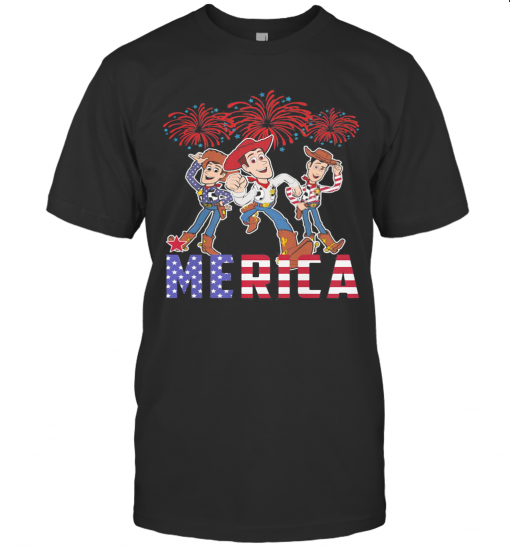 Disney Pixar Toy Woody Merica Firework American Flag Independence Day T-Shirt, hoodie, sweater, longsleeve and ladies t-shirt