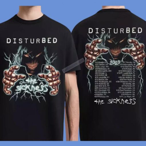 The design of the Disturbed The Game Sickness 2025 Tour T-Shirt encapsulates the energy and raw emotion that Disturbed brings to the stage. With every thread, you can feel the electric atmosphere of a live performance, the pulsating beats of your favorite songs, and the camaraderie of fellow fans. Wearing this shirt is more than just wearing a piece of merch; it’s a way to connect with like-minded individuals who share your enthusiasm for Disturbed’s music. Don’t miss your chance to own a piece of rock history and show the world where your allegiance lies. Get your hands on the Disturbed The Game Sickness 2025 Tour T-Shirt today and let your inner rock star shine!