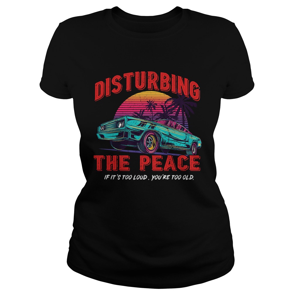 DISTURBING THE PEACE IF ITS TOO LOUD YOURE TOO OLD CAR shirt, hoodie, sweater, longsleeve and ladies t-shirt