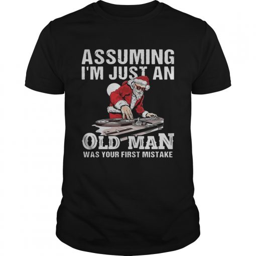 DJ Santa assuming Im just an old man was your first mistake shirt, hoodie, sweater, longsleeve and ladies t-shirt