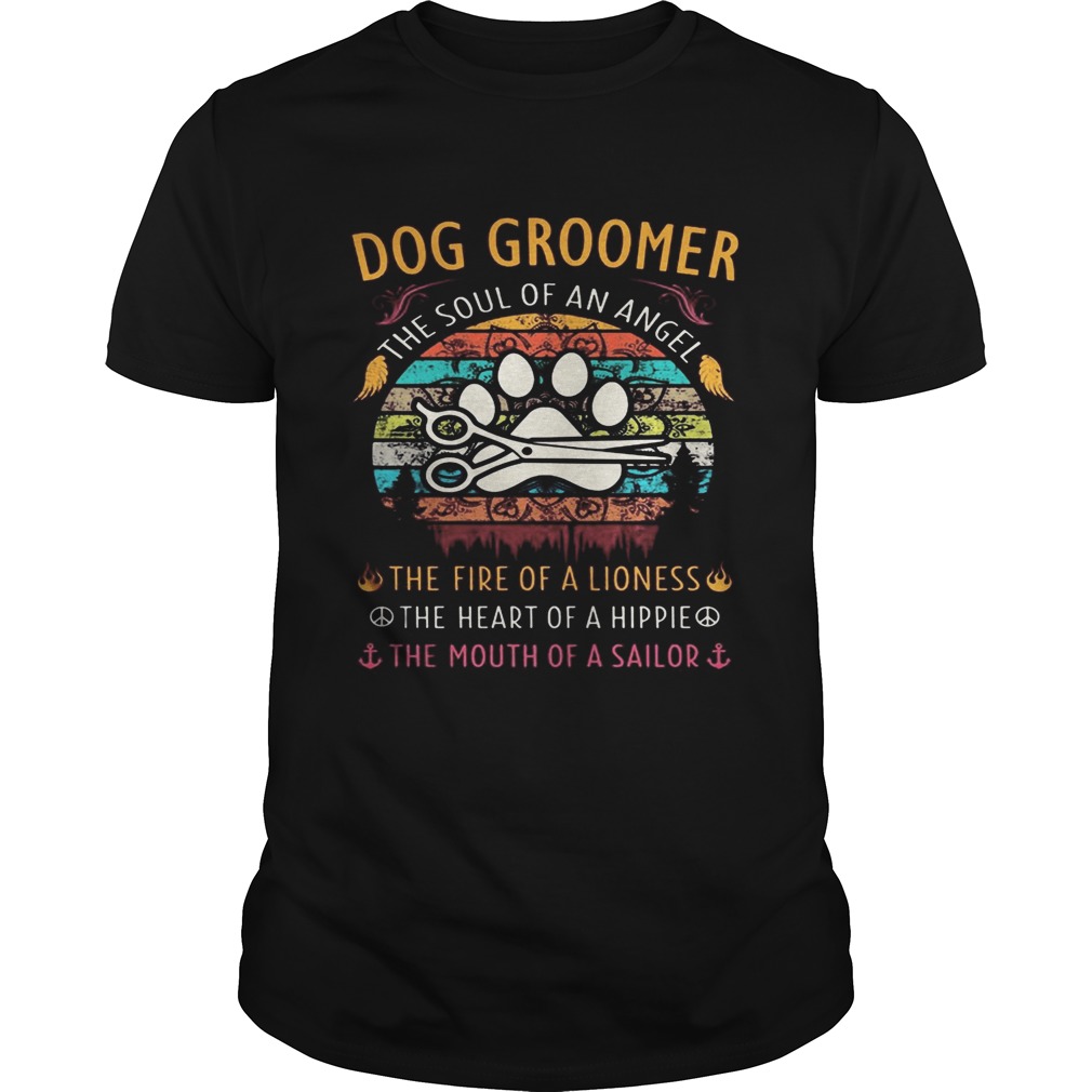 Dog groomer the soul of an angel the fire of a lioness the heart of a hippie the mouth of a sailor, hoodie, sweater, longsleeve and ladies t-shirt