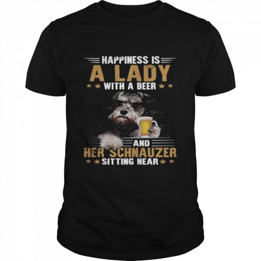 Dog Happiness Is A Lady With A Beer And Her Schnauzer Sitting Near shirt, hoodie, sweater, longsleeve and ladies t-shirt