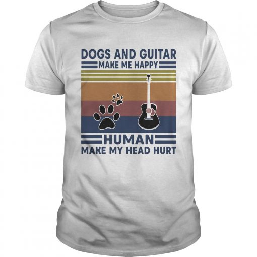 Dogs and guitar make me happy human make my head hurt vintage retro shirt, hoodie, sweater, longsleeve and ladies t-shirt