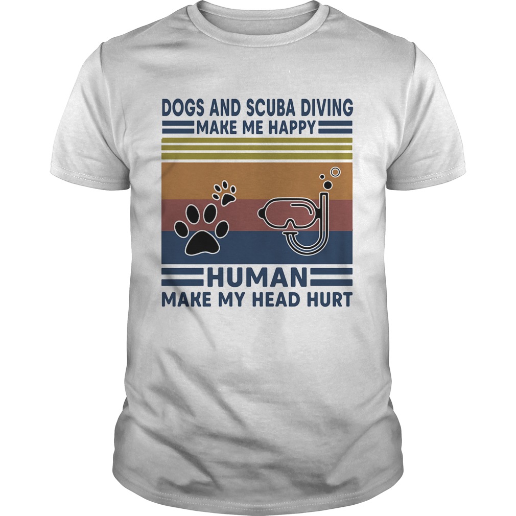 Dogs and scuba diving make me happy human make my head hurt vintage retro shirt, hoodie, sweater, longsleeve and ladies t-shirt