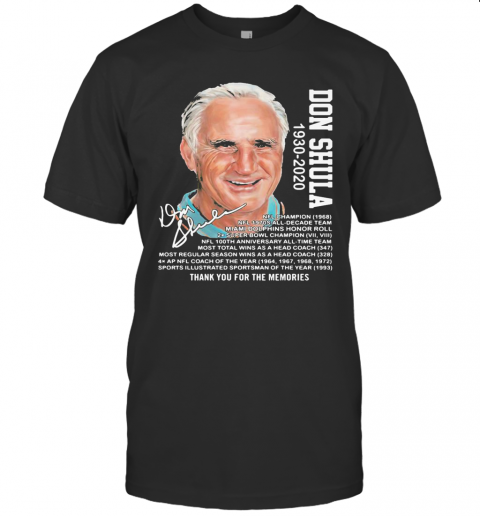 Don Shula 1930 2020 Miami Dolphins Thank You For The Memories Signature T-Shirt, hoodie, sweater, longsleeve and ladies t-shirt