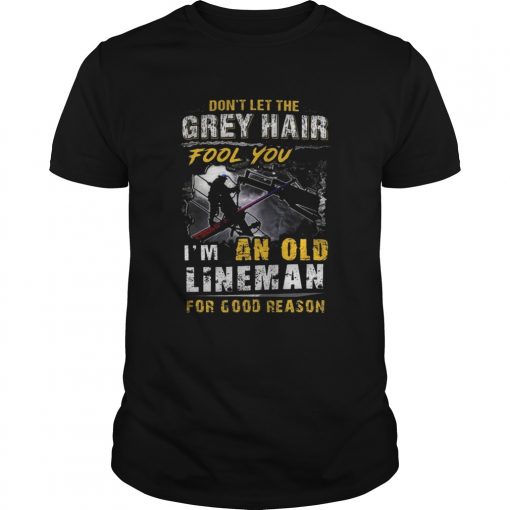 Dont Let The Grey Hair Fool You Im An Old Lineman For Good Reason shirt, hoodie, sweater, longsleeve and ladies t-shirt