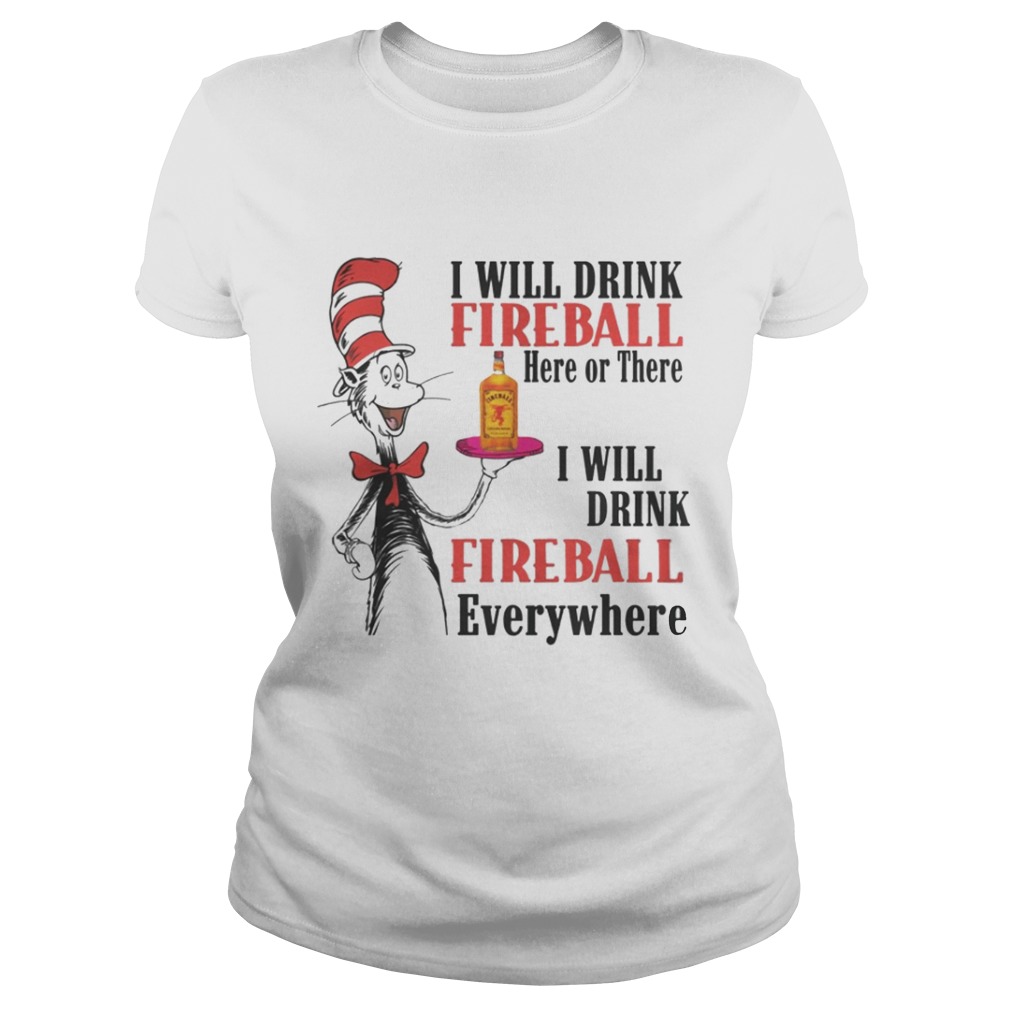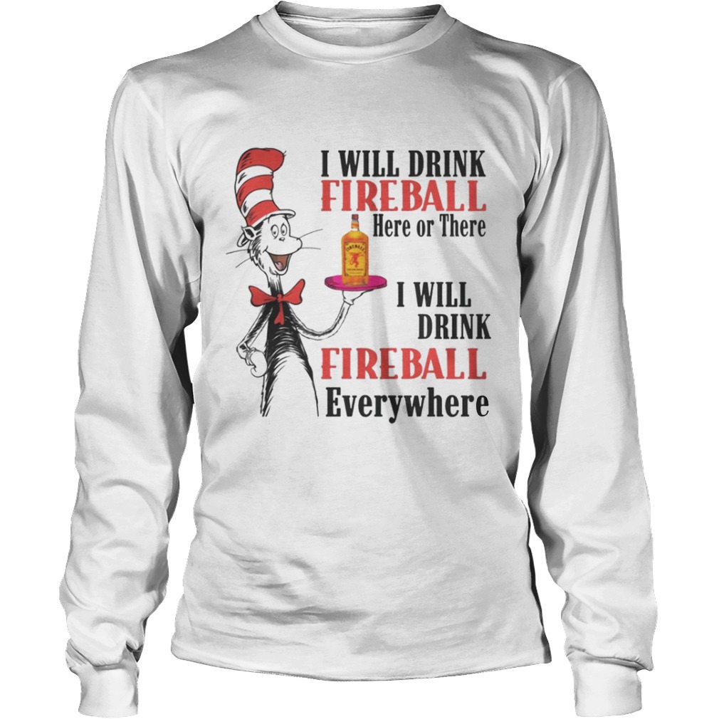Dr. Seuss I will drink Fireball here or there I will drink fireball everywhere shirt